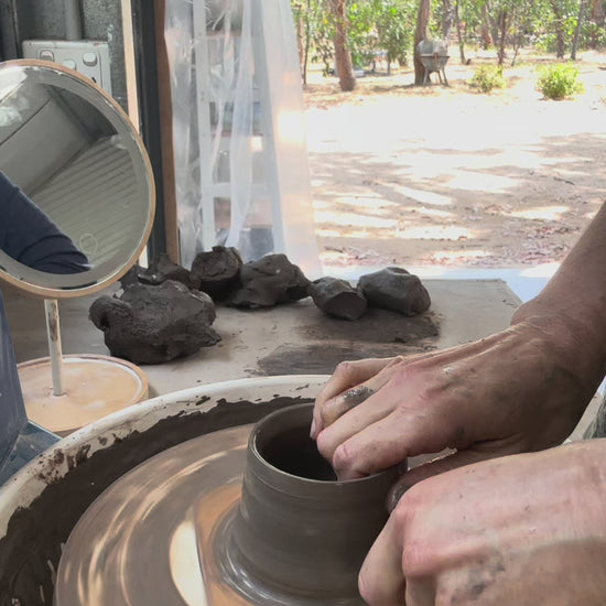 The sea salt ink pot vase was inspired by Victorian ink wells and made by hand on the potters wheel in my garden studio at Bells Beach Victoria. The vase shape given to the ink pot style is perfect for holding a small bouquet or a few hand picked flowers from the garden. We have vases in this style these dotted around our house with feathers and other found treasures.